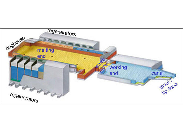 300TPD فرن تجديدي ذو إطلاق متقاطع لجهاز صهر الزجاج الكبير